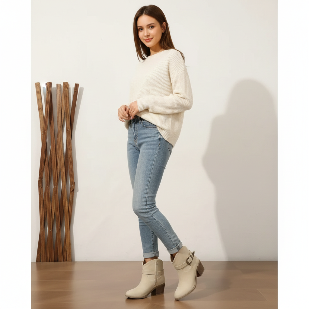 These captivating light brown western ankle boots feature an adjustable buckle strap and a substantial block heel, instantly elevating your everyday denim into a polished, ready-for-anything ensemble. Feel grounded, stylish, and perfectly put together from morning coffee to evening plans.