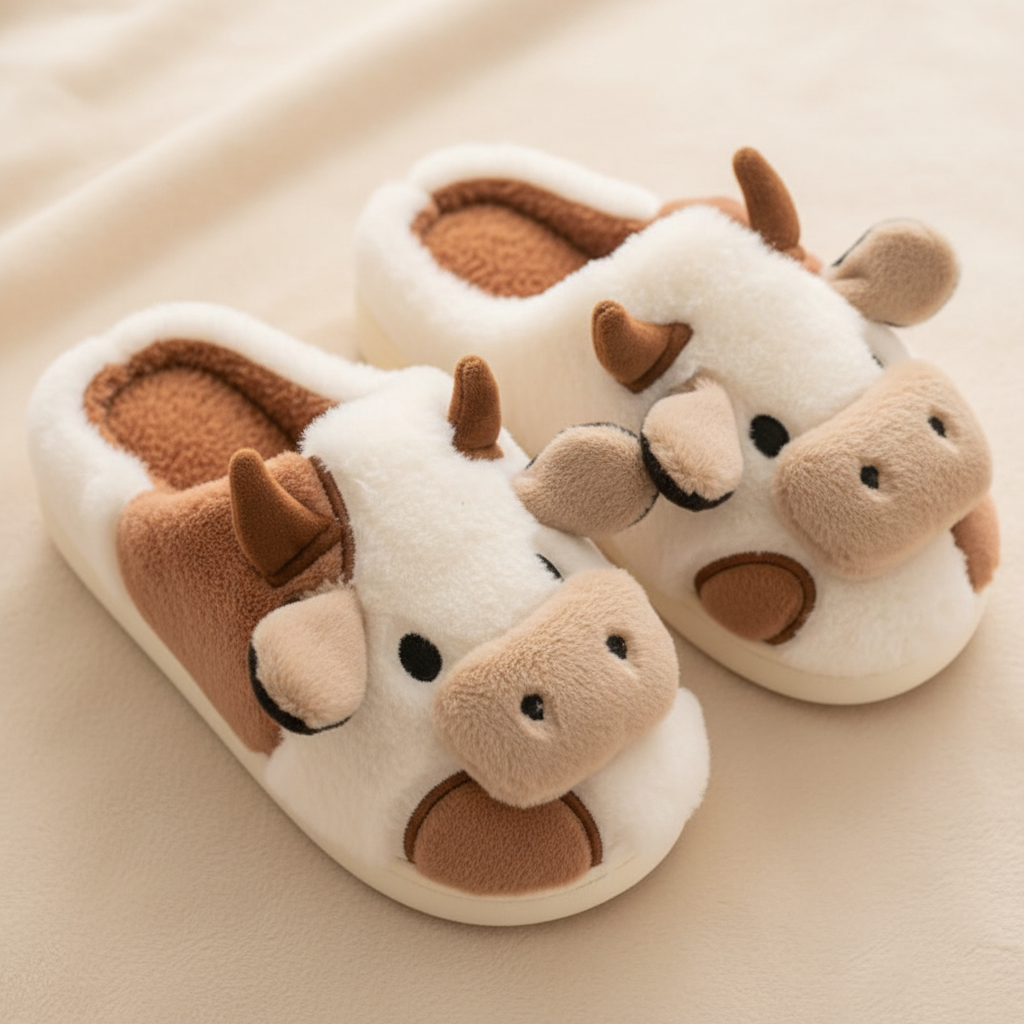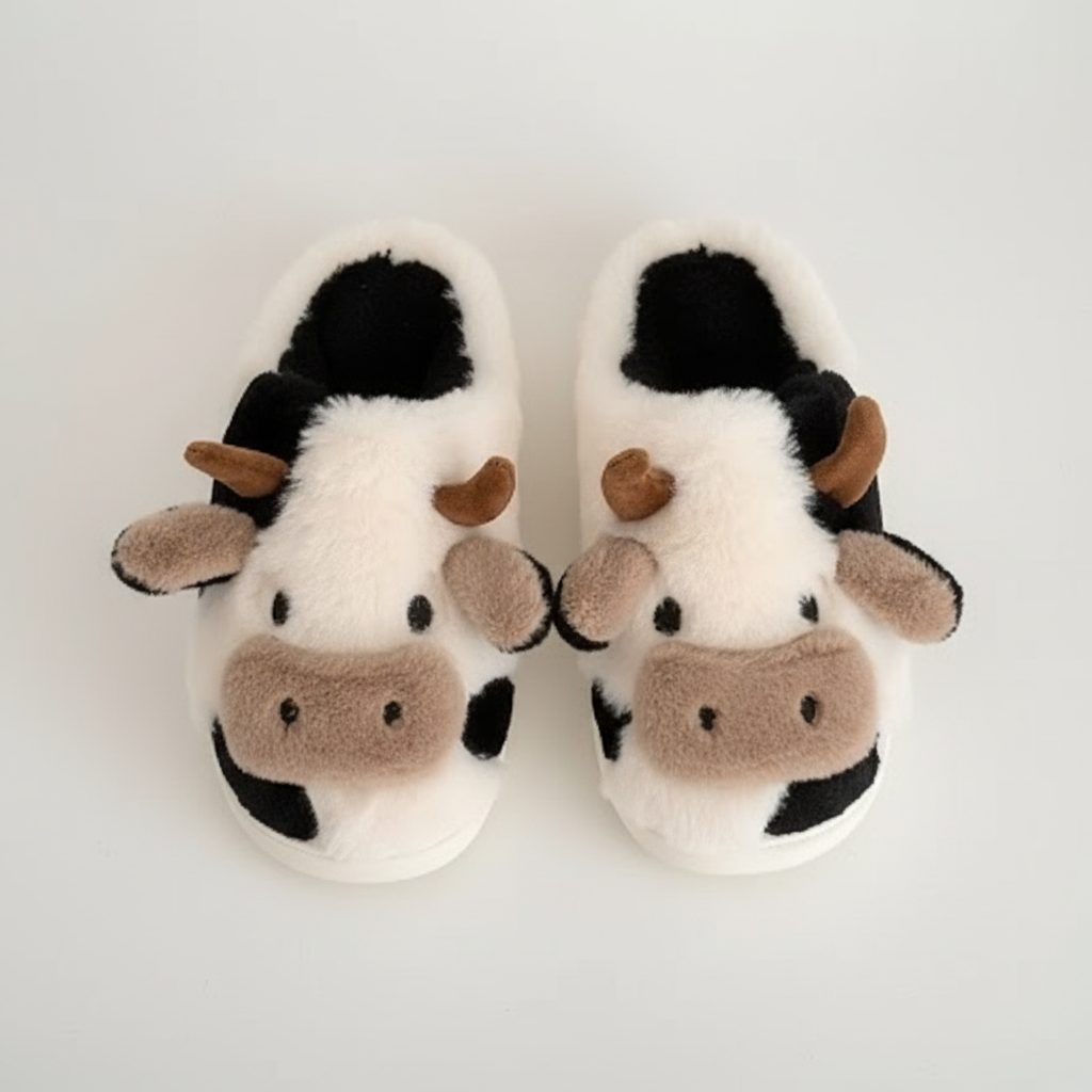 Step into ultimate comfort with these adorable cow-themed slippers. Crafted from sumptuously soft plush fabric, they feature a charming cow face complete with cute ears and horns. The playful black and white cow print, accented with brown details, adds a whimsical touch to your loungewear. Perfect for relaxing at home, these cozy indoor shoes are available in multiple colors and sizes.